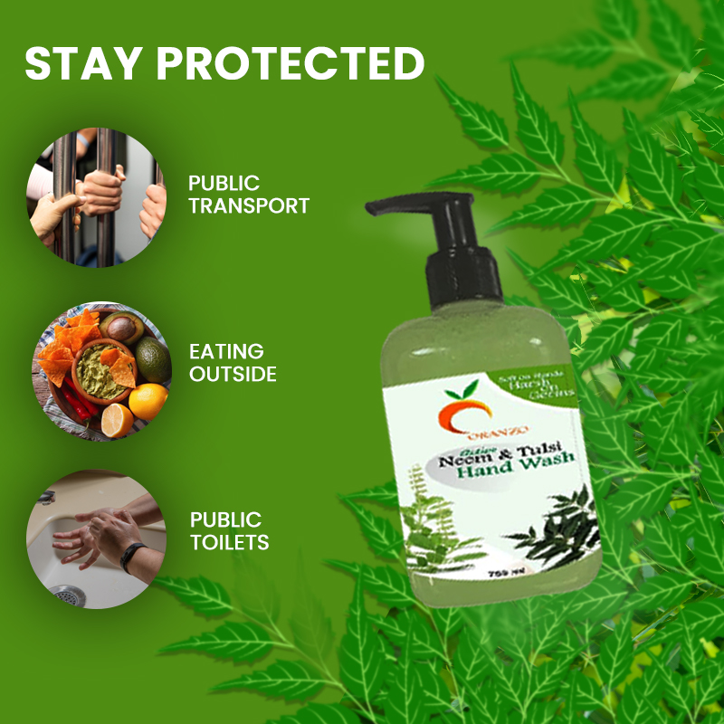 Oranzo handwash with Neem and Tulsi has rich anti-bacterial and anti-oxidant properties. It ensures clean and germ-free hands. Oranzo handwash is harsh on gems yet soft on hands.